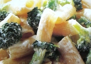別の鍋に生クリームを入れ中火で4~5分混ぜながら煮る。ゆで上がったリガトーニをざるにあげ、汁を切る。生クリームがとろりとしてきたらブロッコリーを入れ煮て鍋の端に寄せチーズを加える。